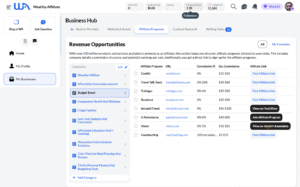 Promoting affiliate deals is essential, and Wealthy Affiliate seriously smooths the way here too. You’ll find a search engine built-in to quickly spot relevant programs by commission, company, and acceptance rate. Over 10,000 programs and 550 million products are inside. I’ve regularly found all the big networks—Amazon, CJ, ShareASale, eBay, Etsy, Walmart—and hundreds of hard-to-find niche brands. When I made a home gym site, I pulled up 30+ suppliers within minutes and was able to apply on the spot.
